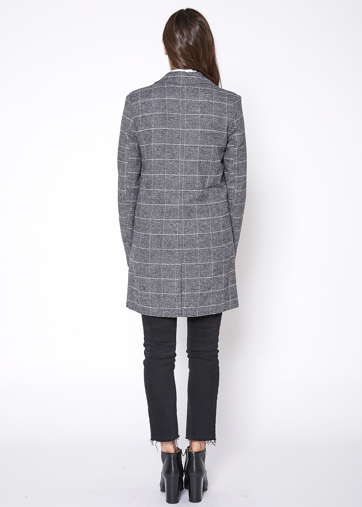 Women's sweet paprika longline jacket in notch collar style. Features a front snap button